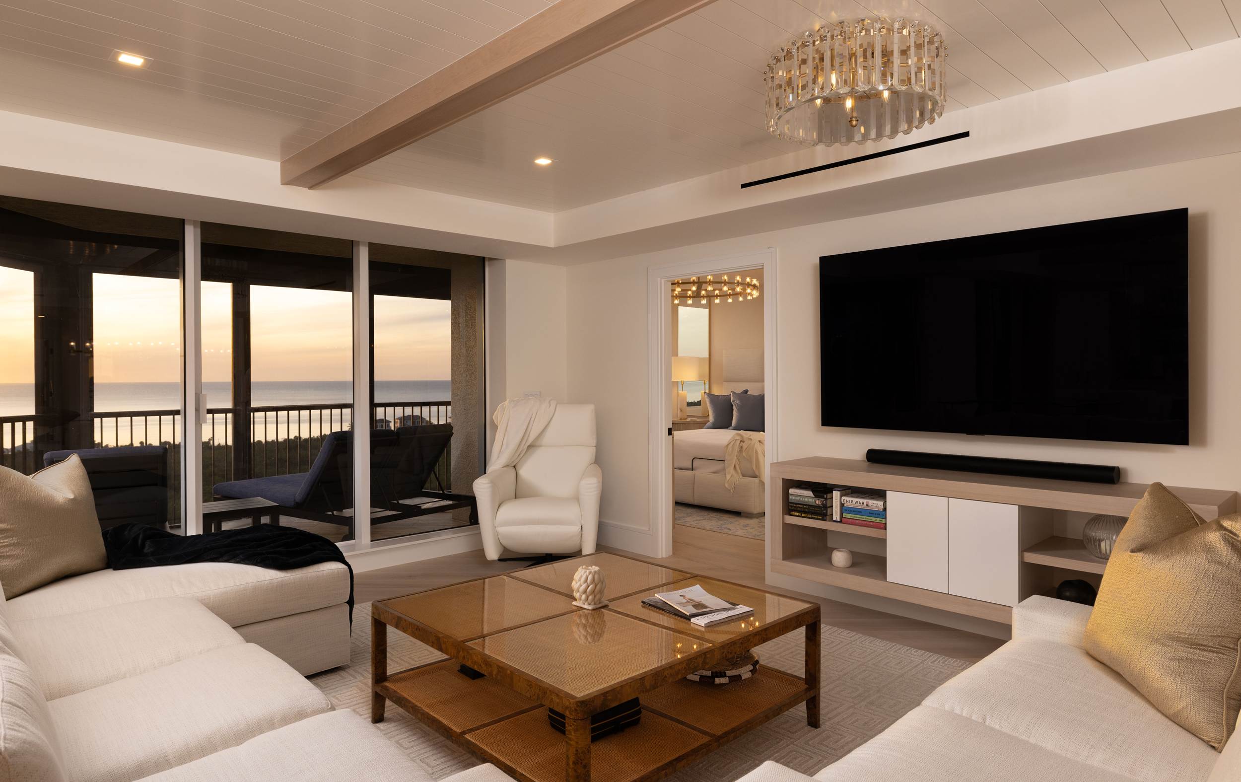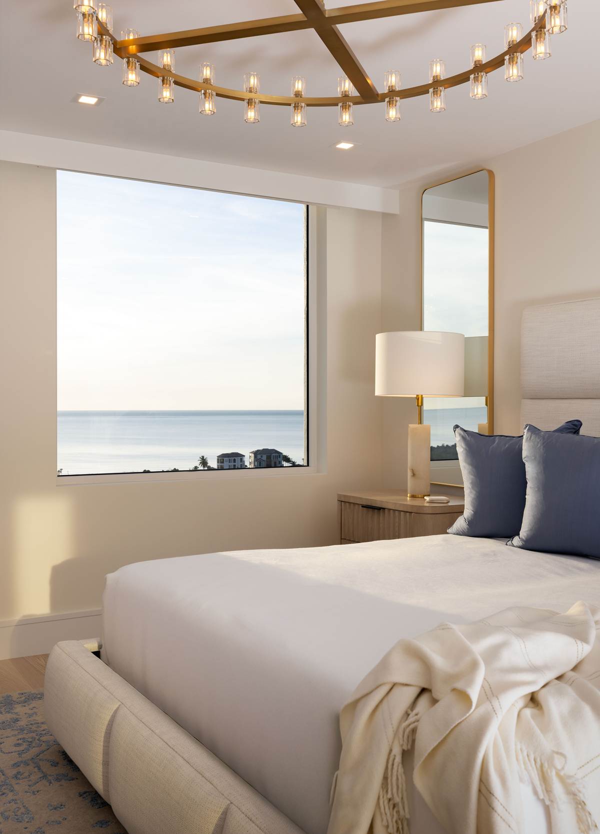 The moment the door opens to this corner unit in Pelican Bay, the architecture steps aside to let the Gulf take center stage. What was once a series of segmented rooms is now a fluid, open-concept sanctuary where the horizon feels like an extension of the living room. The renovation was driven by a single goal: to honor those original floor-to-ceiling windows while grounding the modern space with a sense of permanent, traditional craft.